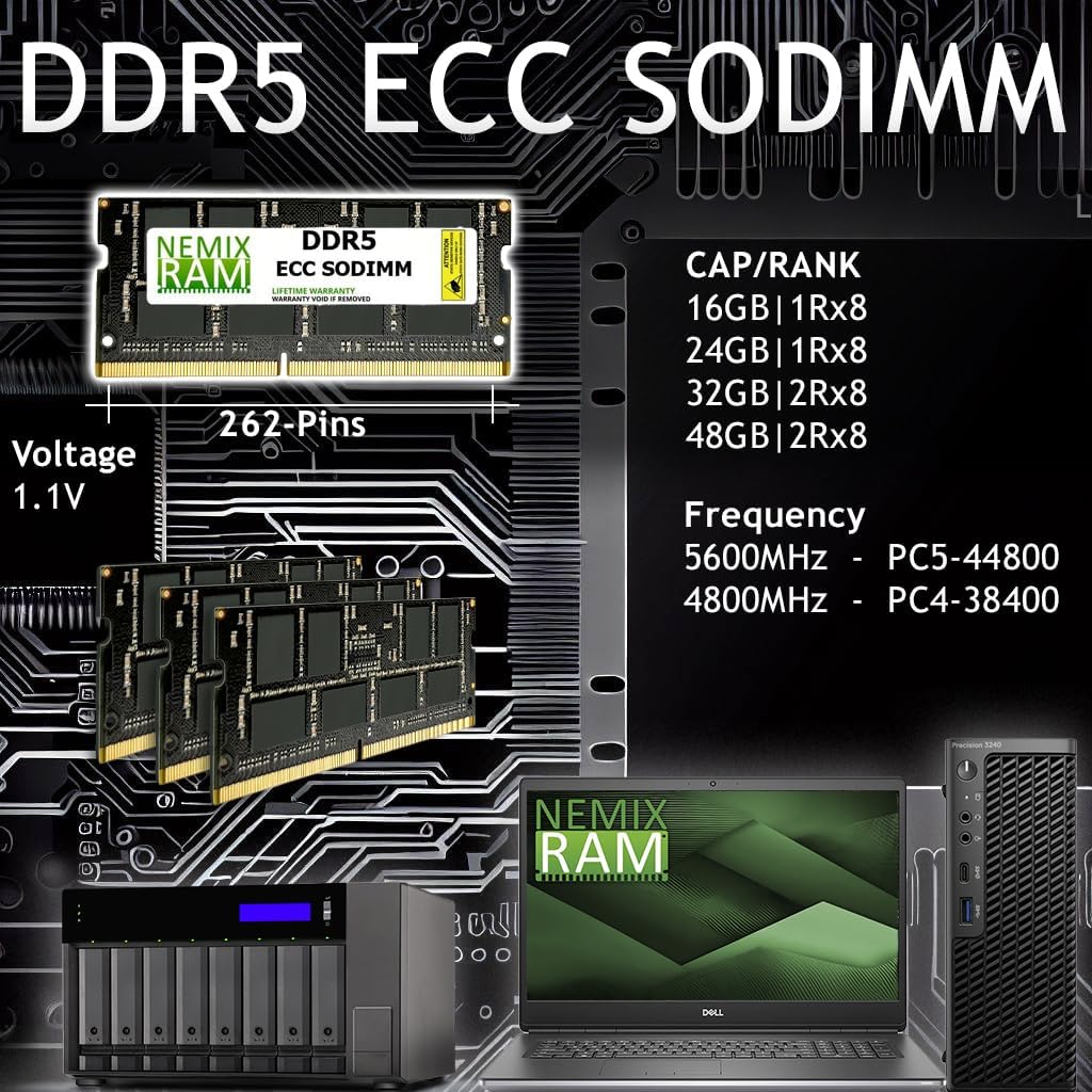 NEMIX RAM DDR5 5600MHZ ECC Unbuffered SODIMM Enterprise & Industrial Mini-PC RAM