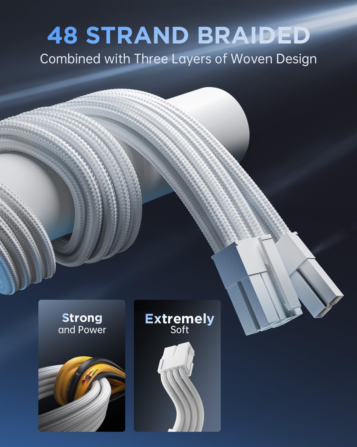 【Stable Silver-Plated PCIe Connector】Our PC power cables feature a high-quality silver-plated connector design, significantly enhancing the stability and reliability of signal transmission. For users seeking the ultimate gaming experience and graphics processing performance, AsiaHorse power sleeved cables are the optimal choice
