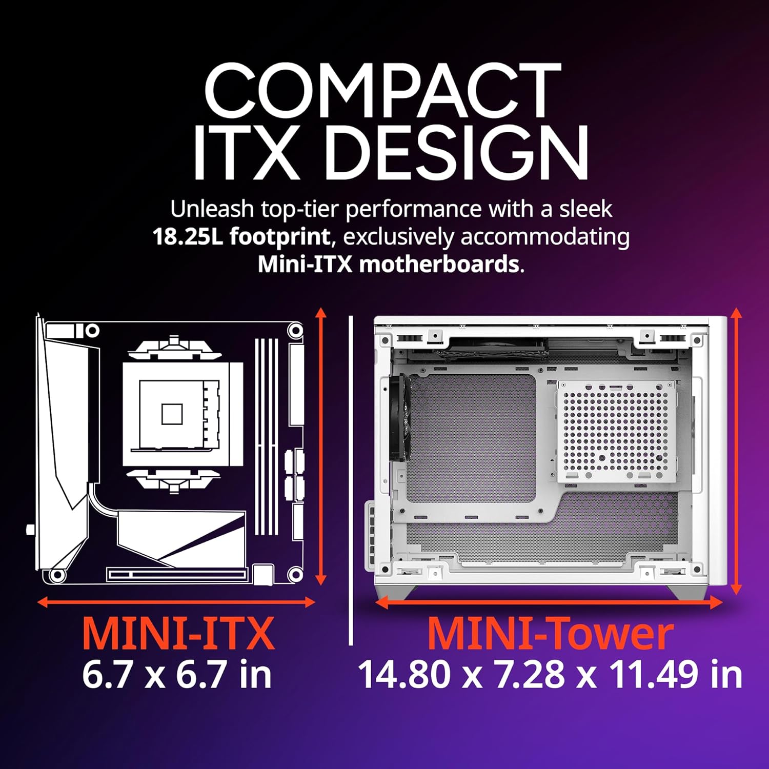 Compact ITX Design: Unleash top-tier performance with a sleek 18.25L footprint, exclusively designed to accommodate Mini-ITX motherboards.
