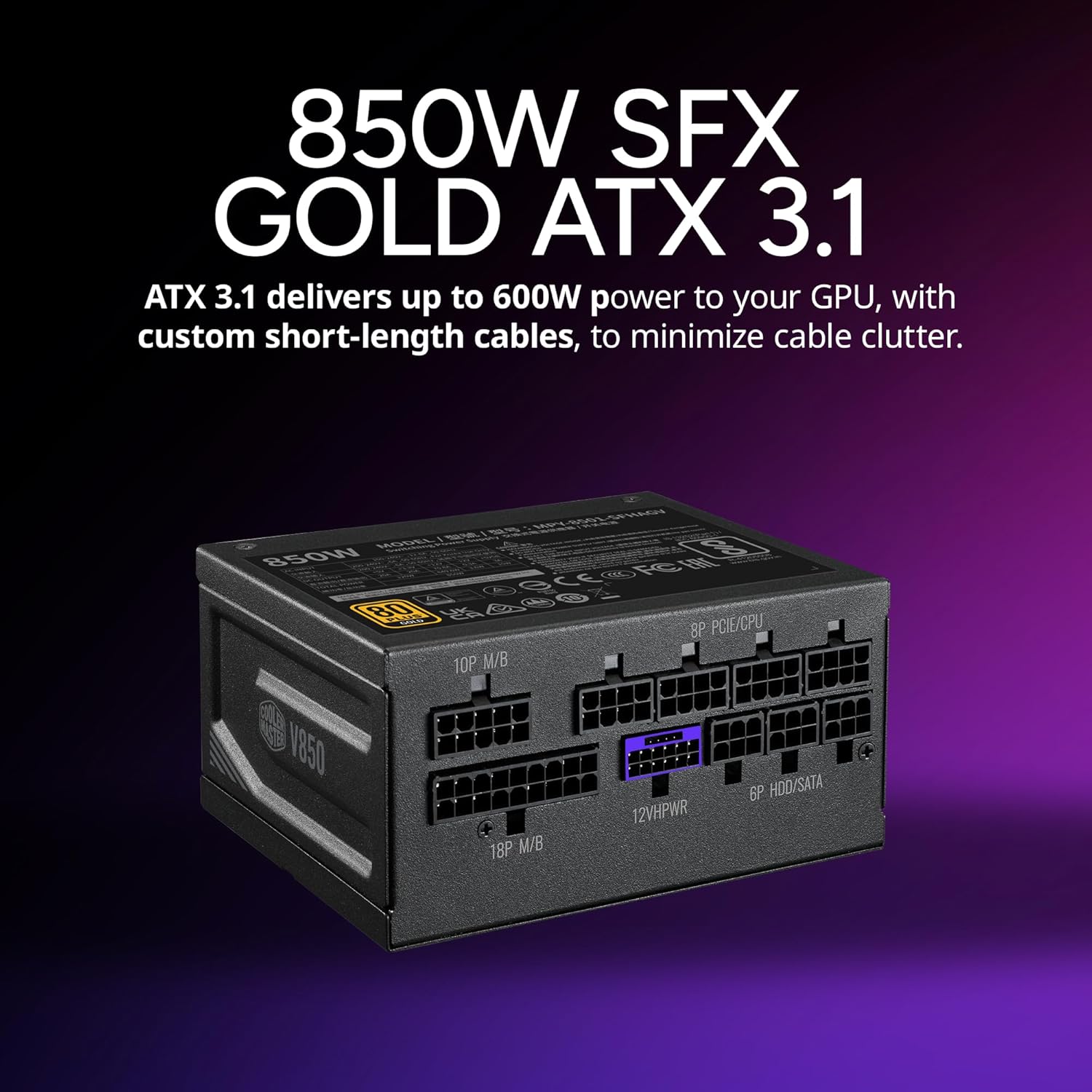 850W SFX Gold ATX 3.1: ATX 3.1 delivers up to 600W power to your GPU, with custom short-length cables, to minimize cable clutter.