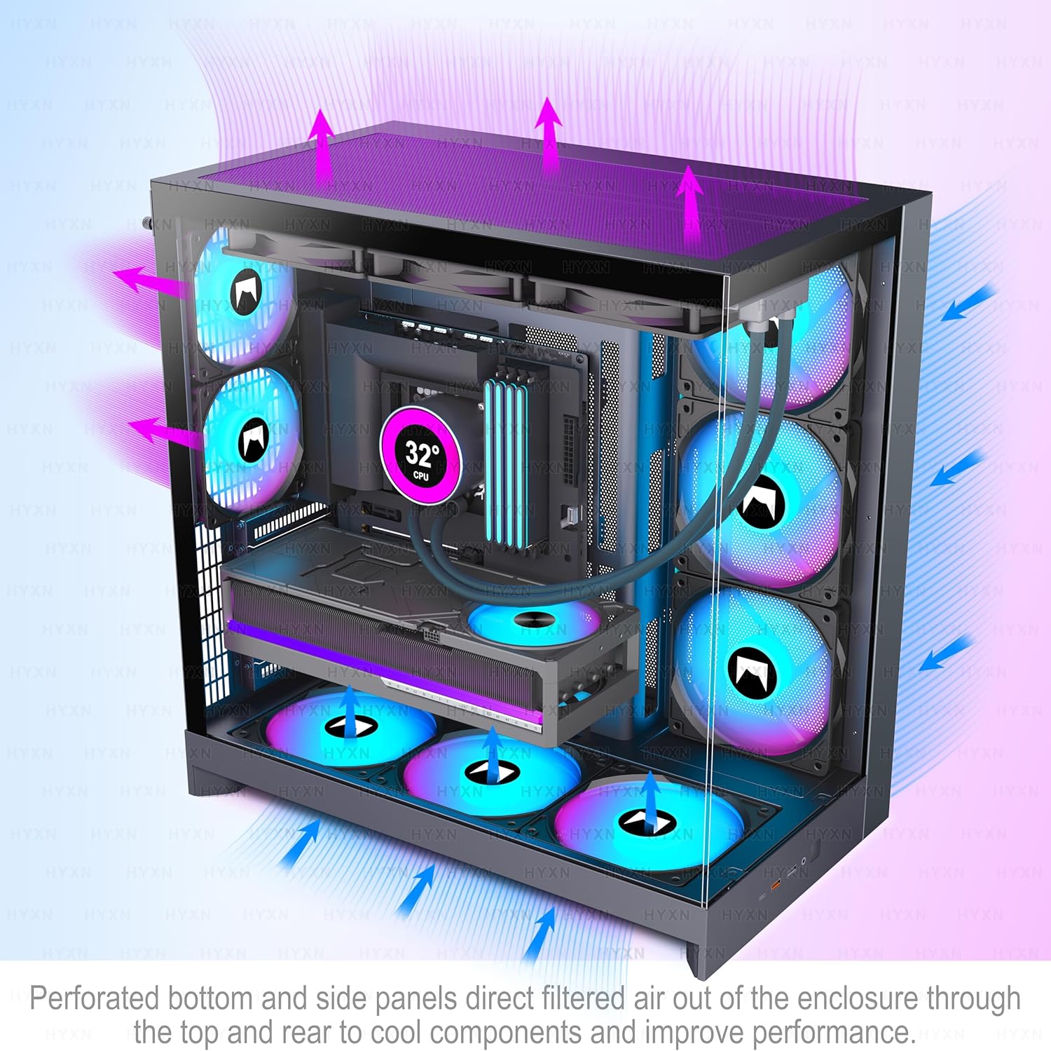 Includes 8 ARGB PWM fans (6x140mm reverse, 2x120mm forward).