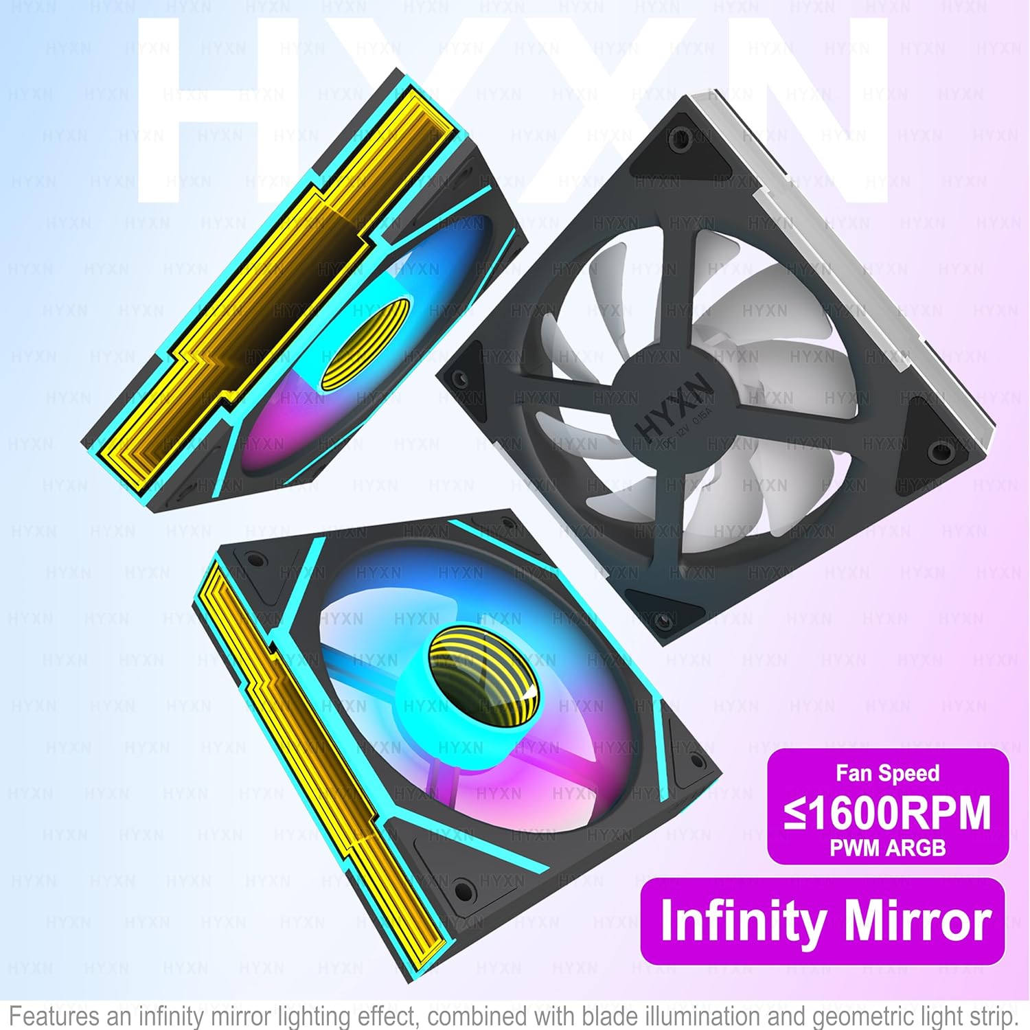 H3 HYXN ATX PC Case – Pre-Installed with 6 Infinity Mirror PWM ARGB Fans – Compact Dual Cavity Mid-Tower PC Gaming Case – with Type-C 3.2-360mm Radiator Support, Black