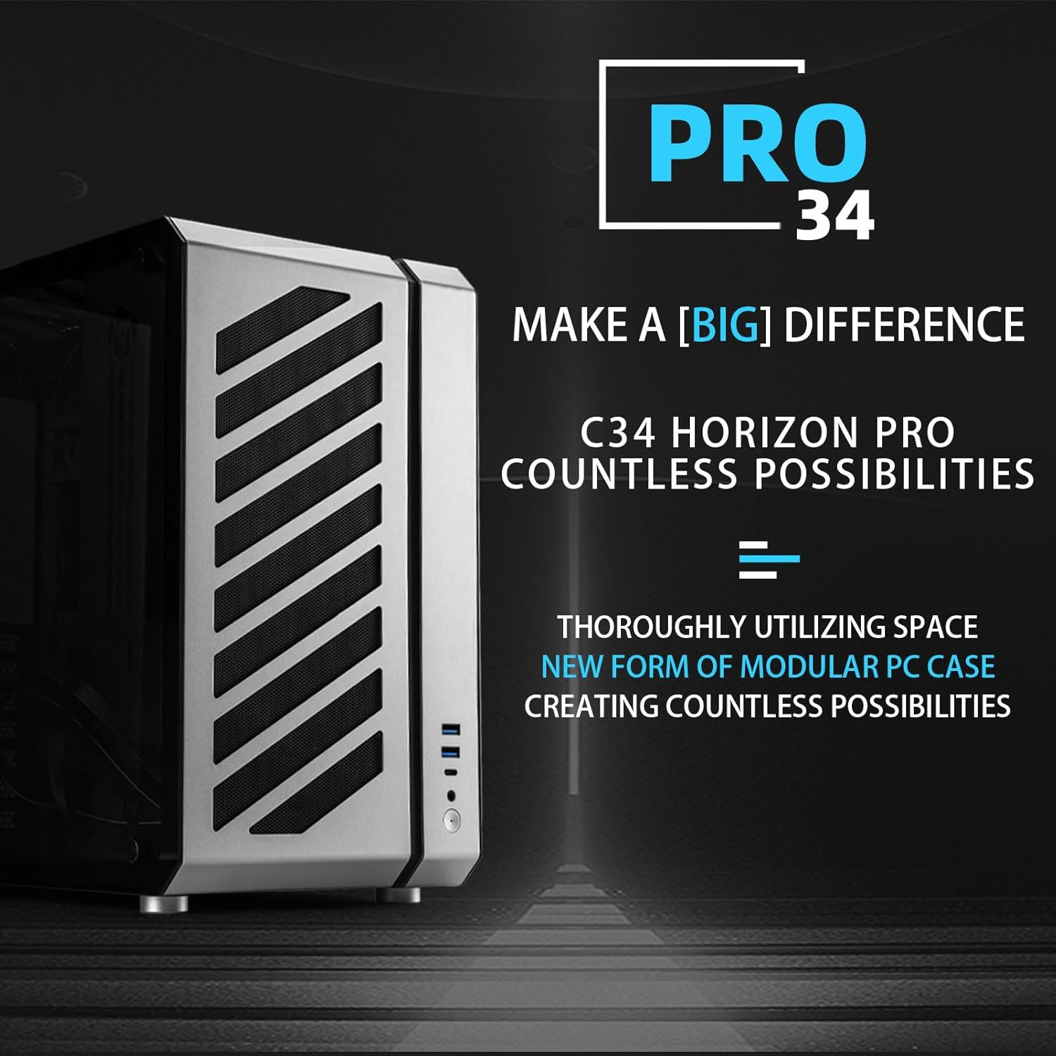 Mechanic Master C34Pro Compact Desktop PC Case with Carry Handle | 360mm AIO Support, ATX/E-ATX (27cm Width), Long GPU Compatibility, Modular Design & Switchable 5-Slot Mode(Moonlight Silver)