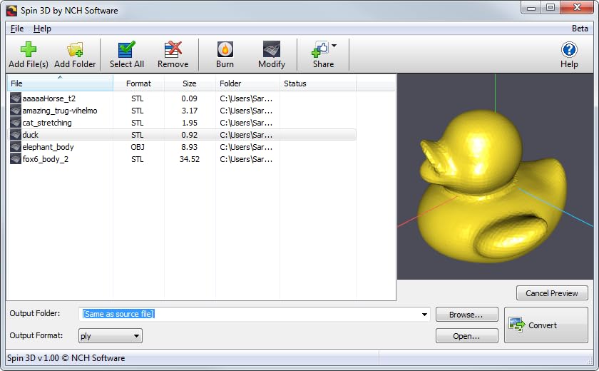 Convert your 3D Design to STL for 3D printing with Spin 3D. Convert your 3D model to the format required by a video game or your 3D editing software. Share a 3D object with a client in their required format.
